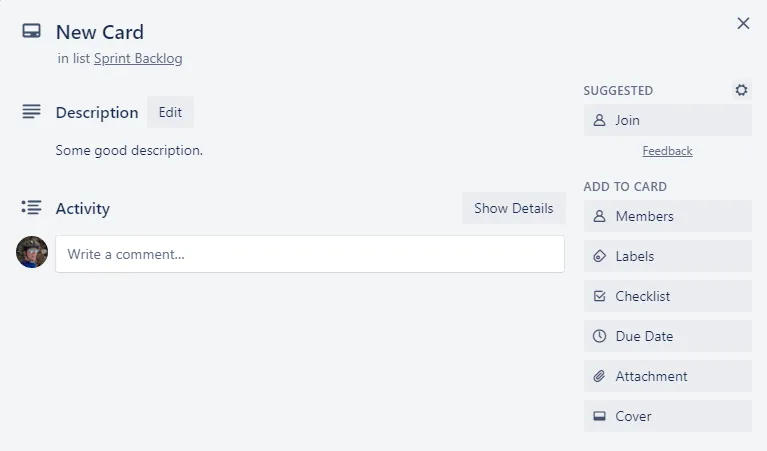 Open up trello and open a board with some cards in it. Click on one of the cards to open up the large editor window.